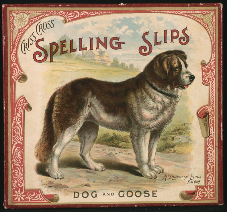 Description"Criss Cross Spelling Slips: Dog & Goose" paper covered cardboard puzzle box, with cover illustration of a dog; box cover inscribed, "CRISS CROSS/ SPELLING SLIPS/ DOG AND GOOSE/ McLOUGHLIN BROS. NEW YORK.".Object NamePicture puzzle box