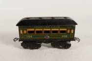 DescriptionPassenger car. Lithograph printed sides. Green with yellow accents. Black roof. "1106". Eight wheels.Object NameRolling stock
